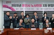 (한국글로벌뉴스 - 박소연 기자) 용인특례시는 17일 용인시노동복지회관에서 제3차 노사민정협의회 본협의회와 2025년 노사민정협의회 성과보고회를 열었다고 밝혔다. 이날 협의회엔 노사민정협의회 위원장인 이상일 시장과 노사민정협의회 위원들이 참석한 가운데 지역 노동 현안과 향후 노사민정 상생 협력 사업 방향 등을 논의했다. 이어 열린 성과보고회에선 노사상생 발전과 지역 노동 환경 개선에 기여한 유공자들에 대한 표창과 감사패 수여가 진행됐다. 노동자 권익 증진과 취약노동자 보호, 산업현장 안전 강화 등 노사상생 발전에 기여한 드림원 박단영 대표이사, 예송장애인가족협회 이원경 대표 등 10명이 표창을 받았다. 노사민정협의회 활성화와 지역 상생의 노사문화 정착에 기여한 공로로 오기환 고용노동부 경기지청장과 처인드리미 봉사단 등 5명이 감사패를 받았다. 이상일 시장은 “용인에 반도체 1000조 원 투자 시대가 열렸다”며 “저는 앞으로 투자가 1500조 원을 넘을 것으로 본다”고 말했다. 이 시장은 “SK하이닉스가 600조 원을 용인 반도체클러스터 일반산업단지에 투자하게 되는데, 이는