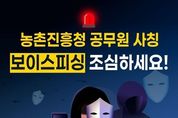 (한국글로벌뉴스 - 박경희 기자) 농촌진흥청 공무원 사칭 보이스피싱 조심하세요! 농촌진흥청 OOO 연구사라고 합니다. [사칭수법] 농촌진흥청 직원(허위 또는 수집된 실명)의 이름을 사용함 * 실제 직원이 아니거나, 인터넷에서 수집한 공무원 실명을 사칭 메일로 보낸 공문서를 보시면 OO사업의 부정 수급 대상자로 되어있습니다. OO계좌로 보조금 반환을 하셔야 합니다. [사칭수법] 허위 공문서 작성하여 계좌입금 유도 (농업인 A씨) 저는 OO사업을 받은적이 없는데요? 농촌진흥청 등 공공기관을 사칭하여 고액의 금전을 계좌로 입금하도록 유도 (농업인 A씨) 급한일인데…돈 좀 빌려줘 금방 꼭 갚을게! → 송금 완료 입금한 돈은 다시 반환 받을 수 있다고하여 지인에게 부탁해 어렵게 마련한 자금 1천만 원을 건네주지만… 사실은 가짜. 뒤늦게 A씨는 사실을 깨닫지만… ■ 농촌진흥청 공무원 사칭 보이스피싱에 속지 않기 위한 TIP 직접 확인하세요!! ① 출처가 불분명한 문자는 수신된 전화번호로 직접 연락하지 마세요. ② 농업 연구, 기술 보급 등 사업 추진 시 입금을