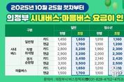 (한국글로벌뉴스 - 박소연 기자) 의정부시는 10월 25일 첫차부터 시내버스 및 마을버스 요금이 인상된다고 밝혔다. 먼저, 시내버스 요금은 경기도가 유가 및 인건비 상승, 광역교통망 확충 등의 요인으로 인상한다. 유형별로 최소 100원에서 최대 400원까지 인상된다. 시의 마을버스 요금 인상은 인건비, 유류비 등 주요 비용 증가로 인한 버스업계 경영난을 완화하고, 시민에게 안전하고 편리한 대중교통 환경을 제공하기 위한 조치다. 교통카드 기준으로 ▲성인은 1천450원에서 1천650원으로 200원 인상 ▲청소년은 1천10원에서 1천160원으로 150원 인상 ▲어린이는 730원에서 830원으로 100원 인상된다. 시는 시민들이 버스 이용 시 혼란을 겪지 않도록 시청 누리집과 차량 내부 안내문 등을 통해 요금 조정 내용을 적극 홍보하고 있다. 김동근 시장은 “이번 버스요금 인상은 대중교통 운영의 안정성을 확보하기 위한 불가피한 조치”라며 “시민의 불편을 최소화하고, 더 안전하고 쾌적한 교통서비스를 제공할 수 있도록 최선을 다하겠다”고 말했다.