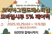 (한국글로벌뉴스 - 박소연 기자) 시흥시는 오는 10월 29일부터 11월 9일까지 12일간 정부가 추진하는 ‘코리아 그랜드 페스티벌’에 참여해 시흥화폐 ‘시루’ 모바일결제 시 5%를 돌려주는 환급행사인 페이백을 진행한다. 이를 통해 시민들의 소비를 촉진하고 지역경제에 활력을 불어넣을 계획이다. ‘코리아 그랜드 페스티벌’은 ‘희망이 되는 소비, 함께 성장하는 경제’를 슬로건으로 내걸고, 가을소비 진작을 위해 범국가적으로 추진되는 대한민국 최대 규모의 할인 축제이자 국가통합 소비 활성화 프로젝트다. 행사 기간, 시흥시는 예산 소진 시까지 시흥화폐 60만 원 결제 한도 내에서 5% 페이백을 제공해 최대 3만 원까지 혜택받을 수 있도록 지원한다. 페이백 내역은 모바일 시루 앱에서 실시간으로 확인할 수 있다. 정호기 시흥시 경제국장은 “이번 페이백 행사를 통해 시흥화폐 시루의 활성화를 도모하고, 시민들이 즐겁게 지역 경제 활성화에 참여할 수 있는 계기가 되길 바란다”라고 말했다.