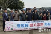 (한국글로벌뉴스 - 박소연 기자) 지난 10월 21일 미양면 영청동 쌈지공원에서 주민자치위원회가 영청동 쌈지공원 현판식을 개최했다. 이번 행사는 위원회가 주도해 조성한 쌈지공원을 마을의 새로운 휴식공간으로 공식 개방하는 자리로, 미양면 주민 5명과 주민자치위원 15여 명이 참석해 자리를 빛냈다. ‘영청동 쌈지공원 가꾸기’는 미양면 주민자치위원회가 마을 내 유휴공간을 정비하고 꽃과 나무를 식재하여 쾌적한 녹색쉼터를 조성한 사업이다. 특히 이번 현판식에서는 위원들이 공원 곳곳을 점검하고 주변 환경을 정돈하는 등 공원 가꾸기 활동을 이어가며 의미를 더했다. 유만곤 미양면 주민자치위원장은 “작은 공간이지만 주민들이 함께 땀 흘려 가꾼 곳이라 더욱 소중하다”며 “앞으로도 마을을 가꾸고 공동체 정신을 살리는 주민자치 활동을 지속해 나가겠다”고 말했다. 손인철 미양면장은 “주민 스스로 마을 환경을 돌보고 아름답게 가꾸는 모습이 지역 공동체의 좋은 본보기가 되고 있다”며 “주민자치 활성화를 위해 지속적으로 지원하겠다”고 전했다.