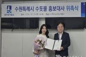 (한국글로벌뉴스 - 박소연 기자) 수원특례시는 리포터 이단비를 ‘수돗물 홍보대사’로 위촉했다. 위촉식은 23일 수원시 상수도사업소 소장실에서 열렸다. 이단비 리포터는 20년 베테랑 방송인으로서 친근하고 신뢰감 있는 이미지로 시민에게 잘 알려져 있다. 다양한 방송 활동을 하고 있다. 앞으로 수원의 깨끗하고 안전한 수돗물을 널리 알리는 홍보활동을 펼칠 예정이다. 수원시는 수돗물 홍보대사 위촉을 계기로 시민과 소통을 강화하고, 수돗물의 신뢰성과 투명성을 높이는 다양한 캠페인을 이어갈 계획이다. 수원시 관계자는 “이단비 홍보대사님은 친근한 이미지로 잘 알려져 있다”며 “깨끗하고 안전한 수돗물의 가치를 널리 알리는 데 큰 도움이 될 것”이라고 기대했다.