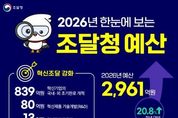 (한국글로벌뉴스 - 박종욱 기자) 조달청은 12월 2일 국회 본회의 의결을 통해 2026년도 예산을 올해 대비 20.8% 증가한 역대 최대규모인 2,961억원으로 확정했다고 밝혔다. 내년도 조달청 예산은 공공조달을 통한 혁신성장 뒷받침을 목표로 혁신조달 강화, 공급망 위기 대응, 조달시스템 인프라 강화에 집중 투입한다. 첫째, 혁신제품 시범구매와 R&D 지원을 확대하여 혁신조달을 강화한다. 정부가 혁신제품의 선도적 구매자(First Buyer)가 되는 국내 시범구매 예산을 올해 대비 270억원 증가한 624억원으로 확대했다. 혁신기업의 늘어난 수요를 반영하고, AI, 로봇 등 융복합 제품과 탄소중립 제품의 국내실증을 확대하여 신산업 성장 생태계 조성에 기여할 계획이다. 중소기업 해외진출의 초기 레퍼런스가 되는 해외실증 예산을 200억원으로 확대하고, 혁신제품 기술개발을 위한 R&D 예산도 80억원 규모로 확보하여 혁신적 조달기업의 스케일업을 총력 지원한다. 둘째, 공급망 위기에 대비한 원자재 비축 역량을 대폭 제고한다. 원자재 공급망 리스크에 선제적으로 대비하기 위한 비축자