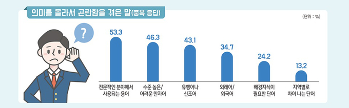 실제로 지난해 국립국어원이 전국 만 20세~69세 성인 남녀 5,000명에게 실시한 ‘2020년 국민의 언어 의식 조사’ 결과를 발표했는데, 우리 국민의 43.1%는 신조어의 의미를 몰라 곤란했던 경험이 있는 것으로 나타났다.