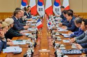 (한국글로벌뉴스 - 박소연 기자) 이재명 대통령은 4월 3일 오전 청와대에서 에마뉘엘 마크롱(Emmanuel Macron)' 대통령과 정상회담을 갖고, 올해 수교 140주년을 맞아 ‘글로벌 전략적 동반자’로 격상된 양국 관계 발전 방안과 주요 지역·국제 정세 등에 대해 심도 있게 논의했다. 이 대통령은 올해 한-프랑스 수교 140주년을 계기로 마크롱 대통령이 취임 후 처음 방한한 것을 환영하고, 우리 신정부 출범 후 국빈으로 우리 나라를 찾은 첫 유럽 정상인 만큼 의미가 더욱 각별하다 했다. 이에 마크롱 대통령은 프랑스 대통령으로서 11년 만에 방한하게 되어 뜻깊다고 전했다. 양 정상은 최근 중동 전쟁과 그로 인한 영향에 대해 심도 있는 논의를 갖고, 중동의 안정과 평화가 조속히 회복되어야 한다는 데 의견을 같이 했다. 아울러, 국가 경제 및 국민의 삶에 미칠 충격을 최소화하기 위한 거시경제 정책 대응 경험과 전략을 공유하는 한편, 원자력, 해상풍력 분야 협력 확대를 통한 에너지안보 강화 및 호르무즈 해협 내 안전한 해상수송로 확보를 위한 협력 의지를 확인했다. 이어 양 정상은 2004년 '21세기 포괄적 동반