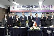 (한국글로벌뉴스 - 박소연 기자) 성남시는 국제 자매도시인 중국 후이저우시 대표단이 성남 국제 바이오헬스케어 컨벤션(10.23~24) 행사 참관을 위해 지역을 방문했다고 24일 밝혔다. 이번 방문은 성남시와 후이저우시가 2016년 우호협력도시 협약을 체결하고서 올해 6월 자매결연 협약 체결로 관계를 격상한 뒤 성남시의 초청으로 이뤄진 첫 공식 교류 일정이다. 중국 후이저우시 부시장 일행은 10월 23일 오후 2시 성남 국제 바이오헬스케어 컨벤션 현장인 성남글로벌융합센터(시흥동)를 찾았다. 돤즈후이 중국 후이저우시 부시장은 컨벤션 개막식에서 “성남시와 후이저우시는 한국과 중국을 대표하는 혁신 산업도시”라면서 “향후 양 도시의 기술혁신과 연구개발을 중심으로 상생 협력을 강화해 나가길 바란다”는 내용의 축사를 했다. 대표단은 이어 △16개국 51명의 바이어가 참여한 수출상담회 △50개 부스의 의료기기, 인공지능(AI)·디지털 헬스케어, 바이오헬스케어 제품 전시장 △비즈니스 교류회 등을 참관했다. 성남시청 4층 시장 집무실을 방문해 신상진 성남시장과 간담회를 하고, 경제·산업 협력 확대와 혁신