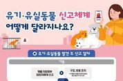 (한국글로벌뉴스 - 박경희 기자) 유기·유실동물 신고체계 어떻게 달라지나요? ■ 유기·유실동물 발견 후 신고 절차 (기존) 개별 지방정부 담당자에게 신고 → 구조, 보호 조치 *지역별로 동물보호센터 등에서 현장 출동 후 구조·보호 (개선) 방법 ① 개별 지방정부 담당자에게 신고 → 구조, 보호 조치 *지역별로 동물보호센터 등에서 현장 출동 후 구조·보호 방법 ② 동물보호상담센터 ☎1577-0954(1) → 관할 지방정부 전화 자동 연결 → 구조, 보호 조치 *지역별로 동물보호센터 등에서 현장 출동 후 구조·보호 방법 ③ 국가동물보호정보시스템 접수 → 접수 내용 관할 지방정부 전달 → 구조, 보호 조치 *지역별로 동물보호센터 등에서 현장 출동 후 구조·보호