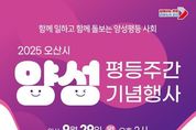 (한국글로벌뉴스 - 박소연 기자) 오산시는 오는 9월 29일 오후 2시, 오산시청 3층 대회의실에서 ‘2025년 양성평등주간 기념행사’를 개최한다고 밝혔다. 이번 행사는 “모두가 존중받는 성평등 사회, 모두가 행복한 오산”을 주제로 양성평등의 의미를 되새기고 시민이 함께 소통하며 즐길 수 있는 프로그램으로 진행된다. 행사는 1부와 2부로 나뉘어 열린다. 먼저 1부에서는 양성평등 실천 유공자에 대한 표창이 수여되고 이권재 시장이 직접 축사를 전한다. 이어지는 2부에서는 ‘양성평등 소통 힐링 토크쇼’가 진행되며, 개그우먼 출신으로 육아맘 힐링콘서트 ‘투맘쇼’에서 활동 중인 조승희와 KBS 개그콘서트 ‘소통왕 말자 할매’ 코너로 잘 알려진 김영희가 출연한다. 두 사람은 ‘동갑이몽’이라는 주제를 통해 양성평등에 관한 이야기를 쉽고 재미있게 풀어내며 시민과 자유롭게 소통할 예정이다. 오산시 관계자는 “이번 행사가 양성평등의 가치를 확산하고 성평등한 사회 분위기를 조성하는 계기가 되길 바란다”며, “시민들의 많은 관심과 적극적인 참여를 부탁드린다”고 말했다.