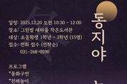 (한국글로벌뉴스 - 박소연 기자) 수원시 장안구 정자3동 그린빌새마을문고는 동지를 맞아 오는 20일 전통문화 등 다양한 프로그램을 체험할 수 있는 ‘동지야 놀자’ 행사를 개최한다고 밝혔다. 이번 행사는 오는 20일 오전 10시 30분부터 12시까지 도서관에서 진행되며, △동화구연 △작은음악회 △전래놀이 △팥죽나눔 등 다양한 프로그램이 마련됐다. 박혜경 그린빌새마을문고회장은 “이번 행사를 통해 우리 고유의 세시풍속을 자연스럽게 익히고 따뜻한 겨울 정을 느낄 수 있길 바란다”며 “앞으로도 지역 주민과 함께하는 작은도서관이 될 수 있도록 노력하겠다”고 말했다.