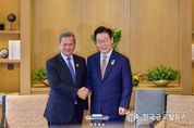 (한국글로벌뉴스 - 박소연 기자) 이재명 대통령은 27일 말레이시아 '안와르 이브라힘(Anwar Ibrahim)' 말레이시아 총리와 첫 정상회담을 가졌다. 이 대통령은 취임 후 첫 아세안 국가 방문지로 올해 아세안 의장국이자 오랜 우호국인 말레이시아를 방문해 매우 뜻깊다고 말했고, 안와르 총리는 이 대통령이 APEC 정상회의 준비로 분주한 가운데 말레이시아를 방문한 데 대해 사의를 표했다. 안와르 총리는 이어 이 대통령의 이번 말레이시아 방문이 한-말레이시아 관계와 한-아세안 관계가 한 차원 도약하는 중요한 동력을 제공할 것이라고 평가했다. 양 정상은 이번 정상회담을 통해 한국과 말레이시아간 FTA 협상이 타결된 것을 환영하고, 이를 기반으로 역내 핵심 경제협력국으로 양국 간 교역과 투자가 보다 확대됨은 물론, 디지털, AI 등 전략산업 분야에서 협력이 보다 가속화될 것으로 기대했다. 안와르 총리는 “말레이시아의 국방 역량 강화에 있어 한국은 신뢰할 수 있는중요한 파트너”라면서 금번 방산 MOU 체결을 계기로 한국과의 방산 분야 협력 강화를 기대한다고 밝혔다. 양 정상은 양국이 방산을