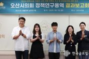 (한국글로벌뉴스 - 박소연 기자) 오산시의회 의원연구단체 ‘오산시민 생활정책 실천연구회’는 지난 19일 의회 제2회의실에서 '오산시 위탁운영 공공시설 및 기관의 시민 이용 만족도 조사 및 운영방안에 관한 연구' 최종보고회를 개최했다고 밝혔다. 이번 연구는 오산시가 위탁운영 중인 주요 공공시설과 기관 이용 현황을 종합분석하고, 시민들의 이용 만족도를 조사해 향후 운영 개선 방안을 제안하는 데 목적을 두고 있다. 연구는 지난 5월부터 약 4개월간 수행됐다. 보고회에서는 연구용역을 수행한 ‘그레이라운지필름’ 최혁수 대표 외 2인이 연구 결과를 발표했으며, 공공시설 운영의 효율성 제고와 시민 편의 향상을 위한 다양한 정책 제안을 제시했다. 이어진 질의응답 시간에는 의원들과 연구진이 시민 의견 반영 방안과 향후 운영 전략에 대해 심도 있는 논의를 진행했다. 조미선 대표의원은 “이번 연구를 통해 도출된 정책 제안이 시민들의 만족도를 높이고 공공서비스 품질을 향상시키는 데 기여하길 바란다”며, “앞으로도 시민 중심의 생활정책 연구 활동을 지속해 나가겠다”고 강조했다. 한편, 이번 연구 결과는 오는 10월 심의위