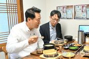 (한국글로벌뉴스 - 박지형 기자) 오세훈 서울시장이 19일 오후 12시, 중구 소재 한 식당에서 정희원 서울건강총괄관과 외식이나 배달시에도 흰쌀밥 대신 통곡물‧잡곡밥을 선택할 수 있는 ‘통쾌한 한끼’ 추진 전략을 논의했다. ‘통쾌한 한끼’는 서울시가 지난 10일 발표한 건강도시 서울 종합계획 ‘더 건강한 서울 9988-3‧3‧3‧3프로젝트’의 핵심사업이다. 이 계획은 ▴365일 운동하는 도시 ▴건강한 먹거리 도시 ▴어르신 건강노화 도시 ▴건강도시 디자인 4대 과제를 통해 2030년까지 시민 건강수명을 3세 늘리고, 운동 실천율을 3%p 높여 시민체력등급을 3등급 더 올리는 것이 목표다. 이날 오 시장과 정 총괄관은 점심식사로 ‘키토 돼지국밥’과 백미 대신 곤약쌀과 현미·흑미·서리태 등 19곡으로 구성된 잡곡밥을 주문했다. 오 시장은 “‘통쾌한 한끼’는 외식이 잦은 현대인들이 통곡물‧잡곡밥을 선택해 자연스럽게 건강한 식습관을 기를 수 있는 생활밀착형 사업”이라며 “개인적으로 10여년 전부터 식당에서 잡곡밥을 선택할 수 있게 해달라고 주인들을 설득하고 다녔는데 사업으로 추진할 수 있어 뿌듯하다”고 말했다. &nbs
