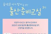 (한국글로벌뉴스 - 박소연 기자) 의정부시 보건소 동부보건과는 관내 20~28주 임산부를 대상으로 ‘임산부 출산준비교실’ 프로그램 3기 대상자 20명을 9월 17일부터 선착순 모집한다. 2025년 임산부 출산준비교실은 총 3기로 진행되며, 지난 6월과 8월에 2기수를 성공적으로 마무리하고 마지막 3기수만 남았다. 1기와 2기의 만족도는 5점 만점에 각각 4.9점, 4.6점으로 이론수업과 태교활동의 다양한 프로그램으로 진행돼 산모들의 큰 호응을 얻었다. 이론수업은 국제 모유수유 전문가를 초빙해 ▲출산과정의 이해 ▲신생아 관리 및 간호법 ▲모유수유 과정 및 방법에 대한 교육으로 진행하며, 공동 육아에 대한 이해를 높이고자 배우자 동반 참여가 가능하다. 태교활동은 산모의 정서적 안정감과 태어날 아기에 대한 기대감을 높이는 ▲태명 턱받이 아기용품 만들기 ▲아로마테라피를 활용한 나만의 디퓨저 만들기로 진행될 예정이다. 임산부 출산준비교실은 동부보건과 다목적실에서 10월 10일부터 31일까지 매주 금요일 2~4시, 총 4회로 진행된다.