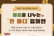 (한국글로벌뉴스 - 박소연 기자) 시흥시장곡종합사회복지관은 연말을 맞아 지역사회에 따뜻한 마음을 전하기 위한 ‘마음을 나누는 한 마디’ 캠페인을 진행한다. 이번 캠페인은 이웃을 향한 응원의 말, 위로의 말, 사랑의 말을 담은 짧은 문장을 시민들로부터 응모 받아 서로에게 위로와 용기를 건네는 나눔의 장을 만들기 위해 마련됐다. 참여자는 직접 창작한 문장 또는 문학 작품 속 인용문 중 마음을 전하고 싶은 한 문장을 제출할 수 있다. 응모 기간은 11월 3일부터 11월 14일까지이며, 시흥시민이라면 누구나 참여할 수 있다. 참여 방법은 시흥시장곡종합사회복지관 1층 복도 현장 신청 또는 온라인으로 하면 된다. 선정된 문장은 내부 심사를 거쳐 캘리그래피 작품으로 제작되며, 오는 12월 시흥시장곡종합사회복지관 복도갤러리에서 전시된다. 전시된 작품은 시민들에게 한 해를 따뜻하게 마무리할 수 있는 작은 위로의 메시지로 전달될 전망이다. 시흥시장곡종합사회복지관 관계자는 “짧은 문장이지만, 시민 한 사람 한 사람의 따뜻한 마음이 모여 이웃에게 큰 위로가 될 것”이라며 “많은 시민이 이번 캠페인에 참여해 따뜻한 시흥을