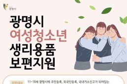 광명시, 4일부터 11~18세 여성청소년 생리용품 구매비 지원
