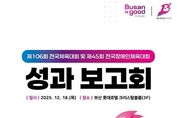 (한국글로벌뉴스 - 박지형 기자) 부산시는 지난 10~11월 부산 전역에서 개최된 '제106회 전국체육대회'와 '제45회 전국장애인체육대회'의 성공적 개최를 기념하고, 대회의 성과를 돌아보는 성과보고회를 오늘(18일) 오전 11시 롯데호텔 서면에서 개최한다고 밝혔다. '제106회 전국체육대회'에서 부산은 52년 만에 종합 2위를 기록하며 대한민국을 대표하는 스포츠 도시로서의 위상을 드높였고, '제45회 전국장애인체육대회'에서는 종합 3위를 기록하며 선수들이 경계를 넘는 도전과 감동을 선사했다. 이번 성과보고회에는 박형준 시장, 안성민 부산시의회 의장, 김석준 교육감을 비롯한 조직위원회 의원, 선수단 및 체육회 관계자, 자원봉사자, 서포터스 등 300여 명이 참석한다. 대회 성공의 주역들과 함께 감동과 노력의 땀이 배어 있는 주요 기록들을 돌아보는 시간은 물론, 숨은 주역들의 이야기를 통해 참가자 모두에게 큰 감동을 선사할 계획이다. 성과보고회는 ▲체전 유공자 감사장 전달 ▲종합 성과보고 ▲체전 기간 촬영 사진 및 영상 상영 ▲‘부기’와 함께하는 체전 영웅들의 인터뷰 등 알찬 프로그램으로 꾸며질 예정