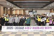 (한국글로벌뉴스 - 박소연 기자) 성남시는 폭설에 대응하기 위해 수정, 중원, 분당 등 구별로 시민들이 참여하는 제설봉사단을 구성해 운영하고 있다고 18일 밝혔다. 이를 위해 수정구는 지난 12월 16일 오후 2시 구청 1층 대회의실에서 수정경찰서와 합동 대책회의를 하고, 제설봉사단 발대식을 개최했다. 수정구는 경찰과의 합동 대책회의 자리에서 지난 12월 4일 단시간에 집중된 폭설 당시의 현장 대응체계를 점검하고, 도로 교통혼잡과 안전사고 발생을 최소화하기 위한 기관 간 협력 방안과 대응 매뉴얼을 논의했다. 이어진 수정구 제설봉사단 발대식엔 전체 단원 1122명 가운데 100명이 참석해 폭설로 인한 주민 불편을 최소화하고 적극적인 제설 자원봉사 활동에 참여할 것을 다짐했다. 제설봉사단은 강설 시 이면도로 경사로, 보도, 육교 등 제설 취약 지역에 우선 투입된다. 전경만 수정구청장은 “제설봉사단은 제설 작업 이외에도 ‘내 집 앞, 눈 치우기’를 주변에 적극적으로 홍보해 주민들의 관심과 협조를 이끌어 내는 역할도 중요하다”면서 “민‧관‧경의 유기적인 협력을 통해 주민들이 안전하게 겨울을 날