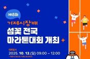 (한국글로벌뉴스 - 박지형 기자) 거제시민과 전국 마라톤 동호인들이 함께하는 '제8회 거제시장배 섬꽃 전국마라톤대회'가 오는 10월 12일 오전 9시 거제스포츠파크에서 열린다. 이번 대회는 거제시체육회가 주최하고 거제시육상연맹이 주관하며, 총 6,600여 명이 참가하는 대규모 생활체육 행사다. 대회는 △5km △10km △Half(산달도 일주) 등 3개 코스로 진행된다. 특히 Half 코스는 내간리 송곡마을과 소랑리 산달바다캠핑장, 산달삼거리와 산달보건진료소를 거쳐 산달도 일원을 달리는 구간으로, 바다와 섬이 어우러진 풍경 속에서 달릴 수 있어 참가자들의 큰 호응이 기대된다. 행사 당일에는 참가자 안전과 원활한 경기 진행을 위해 오전 9시부터 낮 12시까지 거제스포츠파크부터 산달도 일원의 도로가 전면 통제된다. 거제시는 시민 불편을 줄이기 위해 전광판 안내, 마을 방송, 우회도로 표지판 설치를 강화하고, 경찰·소방 등과 협력하여 행사안전관리 인력을 집중 배치해 교통·안전 관리에 만전을 기할 예정이다. 거제시 관계자는 “섬꽃 전국마라톤대회는 생활체육 활성화와 건강한 여가 문화 확산에 기여하는 의미 있는 행사”라며