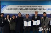 (한국글로벌뉴스 - 박소연 기자) 수원시청소년청년재단은 11일 성균관대학교 자연과학캠퍼스와 청소년ㆍ청년의 취‧창업 지원과 전인적 성장을 위한 업무협약(MOU)을 체결했다고 밝혔다. 이번 협약을 통해 양 기관은 △대학생 연계사업 활성화를 위한 지속적인 교류활동 추진 및 내실화 △청소년의 진로 탐색을 위한 멘토링 및 학과 탐방 기회 제공 △기타 상호 협력이 필요하다고 인정되는 분야에서의 협조 체계를 구축할 예정이다. 재단 관계자는 "이번 협약이 단순한 형식적 절차에 머무르지 않고 우리 청소년‧청년들에게 새로운 경험과 지속적인 성장의 기회를 제공하는 중요한 출발점이 되기를 희망한다"며, "협약의 성공적인 이행을 위해 상호 긴밀하게 협력해 나갈 것"이라고 밝혔다.