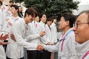 (한국글로벌뉴스 - 박지형 기자) 김진태 도지사는 22일 전국체전에서 황선우, 김우민, 양재훈, 김영범 선수의 계영 400m, 황선우 선수의 개인 혼영 200m 한국 신기록 달성을 축하하며 축전을 보냈다. 강원도청 수영 선수단은 전국체전에 수영 22개 세부종목에 14명의 선수가 출전했으며, 현재 21일까지 메달 23개(금 12, 은 6, 동 5)을 수상하며 도 종합순위 7위 수성 목표에 앞장서고 있다. 특히, 남자 계영 400m에서 한국 신기록(3분11초52)을 합작해 달성해 냈으며, 황선우 선수는 자유형 200m 아시아신기록(1분43초92), 개인 혼영 200m 한국 신기록(1분57초66)을 세우며 눈부신 기량을 보이고 있다. 이에, 김진태 도지사는 “황선우, 김우민, 양재훈, 김영범 선수의 계영 400m, 그리고 황선우 선수의 개인혼영 200m 한국 신기록 달성을 진심으로 축하드린다”며, “한 치의 오차도 없는 완벽한 호흡으로 강원 수영의 저력을 보여준 선수 여러분이 정말 자랑스럽고 대단하다”고 말했다. 김 지사의 축전에 황선우 선수 등 강원도청 수영 선수들은 “따뜻한 축하의 말씀 깊이 감사드