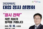 (한국글로벌뉴스 - 박소연 기자) 의왕시가 12월 10일 저녁 7시부터 오전커뮤니티센터 5층 강당에서 ‘2026학년도 대입 정시 지원전략 설명회’를 개최한다. 이번 설명회는 대입 수험생과 학부모 200여 명을 대상으로 진행되며, 대입 정시 합격을 위한 실질적인 전략을 제공할 예정이다. 설명회에서는 이투스 진로진학센터 박중서 센터장이 강연자로 나서 2026학년도 수능 결과와 과목별 성적 추이에 따른 입시 결과, 주요 대학별 정시모집 요강 등 다양한 정보를 다룰 예정이다. 특히, 정시모집 가·나·다군 별 합격 지원전략을 제시해 수험생들이 보다 구체적인 계획을 세울 수 있도록 도울 예정이다. 참가 신청은 11월 25일부터 의왕시 통합예약시스템 홈페이지에서 선착순으로 진행되며, 설명회 참석자에게는 2026학년도 정시 지원전략 자료집과 가·나·다군 배치표가 무료로 제공된다. 김은영 평생교육과장은 “지난해와 올해 대입 수시설명회에서 현장반응이 좋고 강사 만족도가 매우 높았던 입시전문가를 재초빙했다”면서 “이번 설명회가 수험생들이 수능 성적을 바탕으로 정확한 합격 전략을 세우는 데 실질적인 도움이