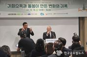 (한국글로벌뉴스 - 박소연 기자) 경기도의회 보건복지위원회 박재용 의원(더불어민주당, 비례)은 18일, 수원컨벤션센터에서 열린 '경기도 장애인 기회소득 성과보고회 및 위원회 위촉식'에 참석했다. 이날 박재용 의원은 축사를 통해 “2023년 대표발의한 '경기도 장애인 기회소득 지원 조례' 제정 이후 3년간 현장에서 운영되며 의미 있는 성과로 이어지고 있어 매우 뿌듯하다”며, “기회소득을 통해 장애인들이 문화·사회 활동에 참여하고, 나아가 사회로 진출할 수 있는 기반이 마련되고 있다는 점이 무엇보다 뜻깊다”고 밝혔다. 이어 “장애인 기회소득은 단순한 소득 지원을 넘어, 장애인이 지역사회 구성원으로서 자신의 가능성을 실현하도록 돕는 정책”이라며, “앞으로도 현장의 변화가 정책으로 이어질 수 있도록 의회 차원에서 지속적으로 점검하고 뒷받침하겠다”고 강조했다. 축사 이후 진행된 위촉식에서 박 의원은 장애인 기회소득 위원회 위원으로 공식 위촉돼, 향후 장애인 기회소득 사업 전반에 대한 심의·자문 역할을 맡게 됐다. 해당 위원회는 장애인 기회소득 관련 정책의 방향 설정과 운영 사항을 논의하는 기구로, 박 의원은 이번 위촉을