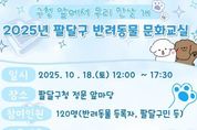 (한국글로벌뉴스 - 박소연 기자) 수원시 팔달구는 10월 18일 오후 12시부터 17시 30분까지 팔달구청 정문 앞마당에서 ‘2025년 팔달구 반려동물 문화교실’을 개최한다고 밝혔다. 반려동물 문화교실은 성숙한 반려문화 확산과 올바른 반려동물 관리, 양육 방법을 알리기 위해 마련됐으며 반려동물 등록자 및 팔달구민 120명을 대상으로 추진한다. 교육 프로그램은 △인식표 만들기 △산책 그룹 훈련 △반려견 셀프 미용으로 총 3개 프로그램을 추진한다. 12시부터 진행하는 ‘인식표 만들기’는 반려견 유실 방지를 위해 동물등록번호와 견주 연락처를 새긴 맞춤형 인식표를 직접 제작할 수 있고, 14시부터는 ‘산책 그룹 훈련’에서는 산책줄 핸들링과 돌발 상황 시 대처법 등 및 올바른 산책 방법에 대해 배워볼 수 있다. 15시 30분에는 초보자도 쉽게 실천할 수 있는 ‘반려견 셀프 미용 수업’이 준비되어 있다. 팔달구 관계자는 “2025년 반려동물 문화교실 개최를 통해 구민들이 반려동물을 책임감 있게 관리하고, 올바른 반려 문화가 조성되길 바란다“라고 말했다. 한편, 팔달구는 구 홈페이지, 안내문자 및