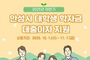 (한국글로벌뉴스 - 박소연 기자) 안성시는 오는 10월 1일부터 11월 7일까지 ‘2025년도 하반기 안성시 대학생 학자금 대출이자’ 지원 신청을 받는다. 지원 대상은 공고일(2025. 10. 1.)기준으로 안성시에 주민등록 주소를 두고 재학(휴학 포함)중인 대학(원) 재학생(휴학생)이다. 지원 대상자로 선정되면 대상자가 한국장학재단에서 대출받은 학자금에 대한 2025년 상반기(1월~6월) 발생 이자를 안성시가 지급하게 된다. 지급은 대출 계좌 원리금에서 차감하는 방식으로 진행되며, 지원 내역은 12월 지급이 확정된 시점에 한국장학재단 인터넷 홈페이지에서 확인할 수 있다. 신청 방법은 주소지 읍·면·동 행정복지센터 또는 안성시청(미래교육과)으로 방문하여 접수하면 된다. 안성시 관계자는 “학자금 대출이자 지원 사업을 통해 대학생들의 학업 부담을 완화하고, 학업에 전념할 수 있는 환경을 조성하는데 도움이 되길 바란다”고 전했다.