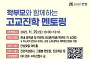 (한국글로벌뉴스 - 박소연 기자) 안성시는 오는 11월 29일 오전 10시, 안성맞춤 아트홀에서 관내 중학생과 학부모를 대상으로 ‘학부모와 함께하는 고교진학 멘토링’을 실시한다고 밝혔다. 이번 멘토링은 ‘진로탐색, 함께 걸어요! 학부모와 자녀가 함께 만드는 고교진학 로드맵’ 이라는 슬로건 아래, 학생들이 자기주도적으로 진로를 설계하고, 학부모가 효과적으로 자녀의 진로를 선택할 수 있도록 돕는 데 중점을 두고 있다. 특히, 가정과 지역사회가 함께하는 진로교육 협력체계를 구축함으로써, 지역 교육공동체 역량 강화와 진로교육 환경 개선을 동시에 도모할 계획이다. 본 프로그램은 안성시 주소지를 두고 있거나 관내 중학교 재학 중인 중학생과 학부모 총 80명을 대상으로 하며, 신청은 10월 1일(수)부터 11월 7일(금)까지 QR코드를 통해 선착순 접수가 가능하다. 행사는 ▲진로 특강 및 검사 해석(80분) ▲커리어맵 실습(30분) ▲그룹별 멘토링(60분) 등이 진행되며, 전문 강사와 멘토가 참여해 실질적이고 체계적인 진로·진학 설계를 돕는다. 그룹 멘토링은 참가 학생 40명을 8명씩 5개 그룹으로 나누어 맞춤형 지도가 이