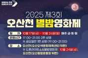 (한국글로벌뉴스 - 박소연 기자) 오산시는 오는 10월 17일부터 26일까지 매주 금·토·일 저녁, 오산천(오색문화체육센터 뒤편)에서 시민들이 야외에서 영화를 즐길 수 있는 '2025 제3회 오산천 별밤영화제'를 개최한다고 밝혔다. 이번 영화제는 남녀노소 누구나 즐길 수 있는 총 10편의 애니메이션과 영화를 상영하며, 오산천을 방문하는 시민이라면 누구나 자유롭게 관람할 수 있다. 특히 올해는 관람객 편의를 위해 ‘배달음식 픽업존’을 운영하여, 휴대폰 앱으로 주문한 음식을 지정된 장소에서 간편하게 수령할 수 있다. 관람객들은 돗자리나 방석 등을 지참해, 자연 속에서 맛있는 음식과 함께 여유로운 영화 관람을 즐길 수 있다. 시 관계자는 “도심 속 자연과 문화가 조화를 이루는 오산천에서 열리는 이번 별밤영화제가 시민들에게 힐링과 특별한 문화 체험의 기회가 되길 바란다”고 전했다.
