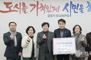 (한국글로벌뉴스 - 박소연 기자) 군포시는 지난 9일, 안양·군포·의왕·과천 지역에서 활동하는 건축사 모임인 안양지역건축사회로 부터 현금 100만원을 기탁받았다. 안양지역건축사회는 180여명의 회원이 있으며 기금을 마련하여 연말이면 군포시에 성금을 기탁하고 있으며 “취약계층이 길고 추운 겨울을 안전하고 따듯하게 보내는데 도움이 됐으면 좋겠다”고 말했다. 하은호 군포시장은 “매년 겨울나기에 어려움이 있는 이웃을 위하여 사랑과 나눔을 실천하는 안양지역건축사회에 진심으로 감사드리며, 취약계층에게 잘 전달하겠다”고 말했다 기탁받은 후원금은 경기사회복지공동모금회를 통해 취약계층에 전달할 예정이다.