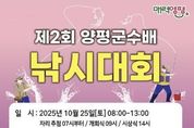 (한국글로벌뉴스 - 박소연 기자) 양평군은 오는 25일 관내 월산낚시터에서 ‘제2회 양평군수배 낚시 대회’를 개최한다고 밝혔다. 이번 대회는 낚시를 통해 군민과 낚시 동호인이 함께 어울리는 축제의 장을 마련하고, 건전한 낚시문화 조성과 지역 경제 활성화를 도모하기 위해 마련됐다. 낚시 어종은 향어와 잉어이며, 참가 신청은 10월 13일부터 선착순 130명까지 가능하다. 참가자들은 당일 현장에서 지정된 구역에서 낚시 실력을 겨루게 되며, 대회에는 대어상(1등 150만 원), 특별상, 행운상 등 다양한 부문에 걸쳐 푸짐한 경품이 준비되어 있다. 전진선 양평군수는 “양평의 맑은 물과 아름다운 자연 속에서 낚시를 즐기며 군민과 낚시 동호인 모두가 편안히 쉴 수 있는 자리가 되길 바란다”며, “이번 대회를 통해 낚시를 매개로 한 관광 활성화와 지역 경제에 활력을 불어넣을 것으로 기대한다”고 말했다. 한편, 양평군은 낚시 대회뿐만 아니라 수산자원 조성 사업, 낚시터 환경 정비 등 건전한 낚시 문화 확립과 수상 생태계 보전 활동을 지속적으로 추진하고 있으며, 앞으로도 친환경적인 낚시 기반 조성을 통해 양평의 깨