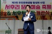 (한국글로벌뉴스 - 박소연 기자) 양평군 서종면은 지난 11일 서후리 마을회관 일원에서 ‘제3회 서후리 문화예술축제 및 탁구장 개관식’을 성황리에 개최했다. 이날 행사에는 홍주표 서종면장과 박명숙·이혜원 경기도의회 의원, 지역 기관·단체장, 평생학습센터 회원, 주민 등 200여 명이 참석해 마을의 문화와 소통이 어우러진 뜻깊은 시간을 가졌다. 행사에서는 평생학습센터 회원들이 준비한 다양한 작품 전시와 공연이 진행되며, 주민들의 재능과 열정을 나누는 무대가 마련됐다. 이어 진행된 탁구장 개관식에서는 새롭게 조성된 생활체육 공간을 둘러보며, 향후 마을 공동체의 건강한 여가활동 거점으로서의 역할에 대한 기대를 나눴다. 홍주표 서종면장은 “주민 여러분이 함께 준비한 문화예술축제와 탁구장 개관은 서종면 공동체의 또 다른 도약을 상징한다”며, “앞으로도 주민이 주도하는 생활문화와 건강한 여가문화가 자리 잡을 수 있도록 지속적인 지원을 아끼지 않겠다”고 밝혔다. 한편, 이번 행사는 지역 주민의 참여로 이뤄진 생활문화 축제이자 건강한 공동체 회복의 장으로, 문화와 체육이 조화를 이루는 서종면의 새로운 지역 축제로