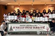 (한국글로벌뉴스 - 박소연 기자) 재단법인 시흥시청소년재단은 지난 12월 5일 능곡청소년문화의집 다목적실에서 ‘2025년 후기청소년 체험형 인턴십 프로그램’ 성과발표회를 열었다. 후기청소년 체험형 인턴십 프로그램은 청소년지도자를 꿈꾸는 후기청소년(19~24세)을 대상으로 진행됐으며, 실무 기반의 직무 경험을 제공해 청소년들이 미래 진로를 구체화할 수 있도록 지원하기 위해 마련됐다. 올해 인턴십은 지난 4월, 8명의 인턴을 선발한 후 5월 전문교육을 시작으로 12월까지 약 8개월간 운영됐다. 시흥시청소년재단 소속 8개 시설(시흥시청소년수련관ㆍ은행청소년문화의집ㆍ연성청소년문화의집ㆍ매화청소년문화센터ㆍ월곶청소년문화의집ㆍ군자청소년문화센터ㆍ정왕청소년문화의집ㆍ시흥시학교밖청소년지원센터)의 직업 현장에 직접 참여해 1인당 평균 240시간의 실무 활동을 수행했다. 참여 청소년들은 기관별 청소년 프로그램 운영 보조, 기획ㆍ행정 지원, 지역사회 기반 활동 등 다양한 직무를 경험하며 실무 능력과 직업 이해도를 높였다. 또한, 현장에서 청소년지도자들과 멘토링을 진행하며 자신의 진로 역량을 체계적으로 확장해 나갔다. 특히, 프