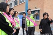 (한국글로벌뉴스 - 박소연 기자) 이상일 용인특례시장은 30일 아침 기흥구 신갈초등학교를 찾아 어린이 안심골목과 승하차 구역 등 현장을 점검했다. 이상일 시장은 이날 김복자 신갈초 교장, 녹색어머니회, 학부모회 관계자 등 10여 명과 함께 학교 정문 방음벽, 어린이보호구역, 학교 숲 조성사업 현장을 살폈다. 시는 2022년 9월부터 2023년 12월까지 4억 4800만 원을 들여 신갈초 주변 상가 골목을 아이들이 안심하고 다닐 수 있도록 ‘안심골목’으로 조성했다. 2024년 6월에는 학부모들의 요청에 따라 베이형 승하차 구역과 어린이보호구역 내 노란색 횡단보도를 설치했으며, 같은 해 8월 학교 정문 노후한 방음벽을 교체했다. 이 시장은 학교 정문부터 후문까지 직접 현장을 둘러보며, 녹색어머니회와 학부모회 회원들을 격려하고 학부모들의 목소리를 청취했다. 이 시장은 또 교내 학교 숲 조성사업 현장을 살피며, 아이들과 공사 현장 노동자의 안전을 당부했다. 시는 오는 12월 조성을 목표로 9000만 원을 들여 신갈초 안에 나무 등을 심어 아이들의 교육 환경을 개선하는 학교 숲 조성