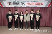 (한국글로벌뉴스 - 박지형 기자) 강원특별자치도(도지사 김진태)는 1월 19일(월) 오후 2시 30분, 도청 신관 소회의실에서 ‘2026 밀라노·코르티나담페초 동계올림픽’에 출전하는 도 선수단의 선전을 기원하는 출정식을 개최했다. 이번 밀라노 코르티나담페초 동계올림픽은 오는 2월 6일부터 22일까지 개최되며 대한민국은 6개 종목 약 70여 명의 선수단이 출전할 계획이다. 이 가운데 도 소속 선수단은 약 20여 명으로 예상되며 이는 대한민국 대표 선수단의 4분의 1에 해당하는 규모다. 이날 출정식에는 김진태 도지사, 양희구 도 체육회장, 권복희 도 빙생연맹회장, 전건탁 도 봅슬레이연맹회장, 황대헌 쇼트트랙 선수 등을 비롯해 스피드 스케이팅, 스켈레톤, 봅슬레이 선수단과 지도자가 참석했다. 선수 대표로 나선 황대헌 선수는 “오늘 이 자리는 각오를 다지는 출발선”이라며, “도청 선수단은 개인이 아닌 팀으로 기록이 아닌 책임으로 이 자리에 섰고 훈련장에서 쌓아온 시간과 노력을 경기장에서 결과로 보여드리겠다”고 각오를 밝혔다. 김진태 도지사는 “이렇게 도 차원에서 출정식을 여는 것은 전국에서도