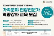 (한국글로벌뉴스 - 박소연 기자) 경기도여성가족재단은 4~6월 총 5회에 걸쳐 경기도 내 가족분야 전문상담사 250명을 대상으로 가족분야 현장전문가 역량강화 교육을 실시한다. 이번 교육은 가족분야 상담을 필요로 하는 경기도민에게 보다 전문적이고 다양한 영역의 상담서비스를 제공할 수 있도록, 현장에서 활동하는 상담사의 실천 역량을 강화하기 위해 마련됐다. 최근 가족분야 상담 현장에서 중요성이 커지고 있는 우울·자살 위험, 중독, 은둔·고립, 장애·입양 등 다양한 유형별 특성과 주요 이슈에 대한 이해 및 상담사례 등으로 현장에서 곧바로 적용할 수 있도록 프로그램을 구성했다. 모집대상은 경기도 내 가족분야 전문상담사이며, 교육은 차수별 50명 내외로 총 5차에 걸쳐 운영된다. 신청기간은 4월 7일부터 5월 31일까지이며, 재단 누리집을 통해 차수별로 선착순 모집한다. 김혜순 재단 대표이사는 “이번 역량강화교육은 도내에서 활동하는 가족분야 전문상담사들의 상담 현장 대응력과 전문성 제고를 위해 기획한 것”이라면서 “가족분야 현장전문가들과 함께 할 수 있는 사업을 마련하겠다”고 말했다.