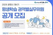 (한국글로벌뉴스 - 박소연 기자) 광명시가 시민 주도의 생활권 중심 평생학습 정책을 강화하기 위해 ‘제4기 평생학습 권역별실무위원회’ 신규 위원 100명을 공개 모집한다. 평생학습 권역별실무위원회는 마을 단위의 학습 의제를 발굴하고 현장 맞춤형 프로그램을 기획·운영하는 민관 협력 기구다. 위원회는 ▲으뜸터(광명1~3동) ▲다울마을(광명4~7동) ▲철산지기(철산1~4동) ▲하안처럼(하안1~4동) ▲예터지기(소하·일직·학온동) 등 5개 권역으로 구성된다. 지원 자격은 광명시에 주민등록이 되어 있는 만 19세 이상 시민이라면 누구나 가능하며, 해당 권역 소재 사업장이나 기관·단체 근무자도 신청할 수 있다. 선발된 위원은 4월 1일부터 2년간 ▲마을 평생학습 의제 발굴 및 사업 제안 ▲마을배움터 프로그램 기획 및 운영 ▲평생학습축제 기획·참여 등 지역 학습 생태계 조성을 위한 핵심 역할을 수행하게 된다. 모집 기간은 오는 2월 19일부터 2월 27일까지다. 접수는 이메일 또는 광명시 평생학습원 방문을 통해 가능하다. 시는 3월 중 서류심사와 면접을 거쳐 최종 위원을 선발하고, 3월