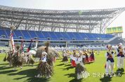 (한국글로벌뉴스 - 박소연 기자) 용인특례시는 제66회 한국민속예술제 청소년부 경연에 경기도 대표로 참가하는 용인시청소년연희단이 27일 용인미르스타디움의 ‘2025 대한민국 조아용 페스티벌’ 행사장에서 출정식을 겸한 전통 놀이 시연을 했다고 28일 밝혔다. 문화체육관광부와 충청북도, 영동군이 26~28일 영동군민운동장에서 주최하는 이번 예술제에서 10대 청소년 50여 명으로 구성된 용인시청소년연희단은 박창배 총감독의 연출로 28일 용인의 전통 민속놀이인 ‘용인거북놀이’를 공연할 예정이다. 용인시청소년연희단은 지난해 10월 용인특례시 동천배수지에서 열린 제26회 경기도민속예술제에서 ‘용인거북놀이’로 대상을 수상해 올해 경기도 대표로 2025년 한국민속예술제에 참가하게 됐다. ‘용인 거북놀이’는 추석 무렵 용인의 마을 청소년들이 거북 모양 탈을 쓰고 집집마다 돌며 벌이던 민속놀이로 마을의 안녕과 풍요를 기원하던 놀이다. 이상일 시장은 용인시청소년연희단 출정식에서 “지난해 경기도민속예술제에서 대상을 받고 경기도 대표로 한국민속예술제억 참가하는 용인시청소년연희단이 제30회 용인시민의 날을 맞아 출정식과 공