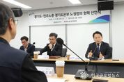 (한국글로벌뉴스 - 박소연 기자) 경기도와 민주노총 경기도본부가 5일 경기도청에서 노정 간 신뢰를 바탕으로 한 협력 선언을 했다. 이날 행사에는 고영인 경기도 경제부지사를 비롯해 김도형 경기도 노동국장, 김진희 민주노총 경기도본부장 등이 참석했다. 양측은 지난 1월 노정협의 상견례를 통해 첫 공식 만남을 가진 바 있다. 이번 협력 선언을 통해 경기도와 민노총 경기도본부는 ▲공공부문 노동권 보장 및 확대 ▲노동가치를 우선으로 한 행정 구현 ▲연 2회(상․하반기) 경기도-민노총 경기도본부 간 정례회의 추진 ▲경기도 정책의 공공성 강화 및 폭넓은 대화 창구 구축을 약속했다. 경기도는 노정협의 요구안의 정책 반영 논의를 위해 3월 중 관계부서 실무회의를 열 계획이다. 고영인 경제부지사는 “노동 존중 사회로 나아가는 실질적인 변화를 위해 경기도와 민노총이 협조 체계를 구축하고 지속적인 소통과 협력을 이어나갈 것”이라고 말했다.