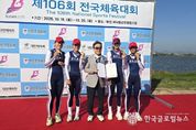 (한국글로벌뉴스 - 박지형 기자) 광주광역시체육회는 ‘제106회 전국체육대회’ 조정 여자18세이하부 쿼드러플스컬 경기에서 광주체고 조정팀이 3연패를 달성했다고 밝혔다. 20일 서낙동 조정경기장에서 열린 조정 18세이하부 쿼드러플스컬 경기에 참가한 광주체고 조정팀(김지선3, 노효림1, 배지영1, 천지민1)이 7분9초69를 기록하며 우승을 차지했다. 104회 전국체전부터 이 종목에서 우승을 차지한 광주체고는 3연패 대기록을 달성했다. 경량급 더블스컬 경기에 참가한 김지선, 배지영 선수는 7분23초80으로 금메달을 차지했고, 싱글스컬 경기에 참가한 노효림도 8분09초32로 가장 먼저 결승선을 통과하며 3명의 선수가 2관왕에 올랐다. 남자 18세이하부 강준우(3), 박준호(2)는 더블스컬에서 은메달을 획득했고 강한경(2), 박성빈(2)과 함께 쿼드러플스컬에서도 동메달을 차지했다. 특히 광주체고 조정팀의 상승세를 이어가고 있는 김지선(국가대표)은 지난 14일 창단식을 가진 목송그룹 여자조정팀에 입단 예정으로 우수한 체육인재가 우리 지역에서 성장하는 모범 사례로 주목받고 있다. 궁도 종목 일반부에 참가한 신