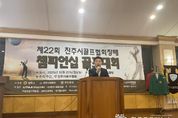 (한국글로벌뉴스 - 박지형 기자) ‘제22회 진주시골프협회장배 챔피언십 골프대회’가 20일 진주컨트리클럽에서 100여 명의 선수 및 관계자들이 참가한 가운데 성황리에 개최됐다. 진주시골프협회가 주최·주관하고 진주시와 진주시체육회가 후원한 이번 대회는 골프 종목의 저변 확대와 골프 동호인들의 화합의 장을 마련하기 위해 열렸다. 경기는 학생선수와 프로선수를 제외한 진주시 거주 핸디 12 이내의 순수 아마추어 골퍼를 대상으로 남자선수권부와 여자선수권부로 나뉘어 스트로크 플레이 방식으로 진행됐으며 경기 결과에 따라 남자선수권부는 5위까지 여자선수권부는 3위까지 시상이 이뤄졌다. 진주시 관계자는 “협회장배 챔피언십 골프대회가 성황리에 개최된 것을 축하한다”며, “이번 대회를 통해 동호인 간의 우의를 돈독히 하고, 골프의 매력을 시민들에게 널리 알리는 기회가 되기를 바란다”고 말했다.