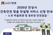 (한국글로벌뉴스 - 박소연 기자) 안성시는 올해 ‘건축안전 맞춤 컨설팅 서비스(노후 마을회관 및 경로당 안전점검)’를 시행한다고 밝혔다. 건축안전 맞춤 컨설팅 서비스는 관련 법령상 정기 점검 의무가 없어 정확한 실태 진단과 안전 취약 요소 파악에 어려움이 있는 소규모 노후 마을회관 및 경로당을 대상으로 안전점검을 실시해, 건물 노후화로 인한 안전사고를 예방하고 시민의 안전한 생활환경 조성에 기여하고자 시행하는 사업이다. 점검 대상은 '건축물관리법' 제15조에 따른 소규모 노후 건축물 점검 대상 중 안전에 취약하거나 재난의 위험이 있다고 판단되는 마을회관 및 경로당이다. 주요 점검 항목은 ▲ 건축물 주요 부재의 구조적 균열과 변형 상태 ▲ 건축물 비구조체 결함 사항 ▲ 주변 축대, 옹벽, 담장 등의 안전상태 등이며, 점검자가 직접 현장을 방문해 육안점검 방식으로 진행된다. 점검을 희망하는 마을회관 및 경로당의 소유자 또는 관리자는 신청서를 작성해 안성시청 건축과에 방문 접수하거나 등기우편으로 접수할 수 있으며, 신청은 연중 상시 가능하다. 점검 후에는 건축물 관리자에게 점검 결과와 함께
