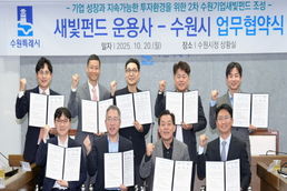 (한국글로벌뉴스 - 박소연 기자) 수원 기업의 성장을 이끌 ‘2차 수원기업새빛펀드’가 출시된다. 수원특례시는 20일 시청 상황실에서 2차 수원기업새빛펀드를 운용할 8개 사와 업무협약을 체결하고, 협력을 약속했다. 2차 수원기업새빛펀드 운용사는 창업초기(일반) 분야 ㈜에스제이투자파트너스, 소재부품장비 분야 ㈜에스브이인베스트먼트, 바이오 분야 비엔에이치인베스트먼트(유), 초격차 분야 ㈜아이비케이벤처투자·에스비아이인베스트먼트㈜, 창업초기(소형) 분야 ㈜탭엔젤파트너스·㈜경기창조경제혁신센터·㈜벤처스퀘어다. 수원시와 8개 운용사는 투자 유치와 기업 성장을 촉진하기 위해 유기적으로 협력하기로 했다. 수원시는 약정 출자금을 벤처투자조합에 출자하고, 운용사는 의무투자금액 이상을 수원 기업에 투자한다. 수원 기업 의무투자 약정액은 265억 원이다. 또 ▲우수기업 발굴·투자 연계 ▲피칭(기업설명) 교육, 엑셀러레이팅(스타트업이 빠르게 성장하도록 지원), 밋업(투자자 유치 행사) 등 기업 컨설팅 ▲기업 콘퍼런스, IR(기업가치 홍보), 창업 오디션 등 행사, 우수기업 심사 등을 협력하기로 했다. 이날 협약식