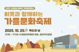 (한국글로벌뉴스 - 박소연 기자) 수원광교박물관은 독도의 날인 10월 25일 오전 11시부터 오후 5시까지 수원광교박물관 야외(광교역사공원)에서 ‘2025 수원광교박물관 가족문화행사–이웃과 함께하는 가을문화축제’를 연다. 가족이 함께 즐길 수 있는 이번 행사는 ‘전통놀이 한마당’과 ‘체험 한마당’으로 진행된다. 게줄다리기·탈춤놀이·길쌈놀이 등 전통놀이를 비롯해 비석치기·투호놀이·버나놀이 등 다양한 프로그램이 마련된다. 체험 한마당에서는 독도의 날을 주제로 한 ▲독도 포일아트 ▲보석 십자수 키링 ▲‘독도는 우리 땅’ 지도 컬러링 등 체험이 운영된다. 또 에코 스텐실 파우치, 유물 컬러링 스크래치 페이퍼, 수원이 타투 스티커, 자개 키링, 민화 팽이 등 가족이 함께할 수 있는 체험도 있다. 지역 연계 프로그램으로 광교종합사회복지관의 발달장애 인식개선 캠페인, 이마트 광교점·아쿠아플라넷 광교점의 상생 이벤트가 함께 열린다. 수원광교박물관 관계자는 “독도의 날을 맞아 전시와 체험을 함께 즐기며 뜻깊은 하루를 보내시길 바란다”며 “앞으로도 박물관의 특성을 살린 문화행사를 준비해 시민 일상에 활력을 더하겠다”