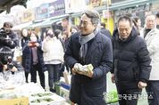 (한국글로벌뉴스 - 박소연 기자) 김동연 경기도지사가 경기도 지원으로 폭설 피해 복구 작업이 진행 중인 의왕 도깨비시장을 찾아 상인들을 격려했다. 2024년 11월 의왕 도깨비시장이 폭설 피해를 당한 후 세 번째 방문이다. 15일 27번째 민생경제 현장투어(달달버스-달려간 곳마다 달라집니다)차 의왕시를 찾은 김동연 지사는 도깨비시장 피해복구 공사 진행 상황과 설을 앞둔 시장 물가 동향 등을 점검하며 시장 상인들과 대화를 나눴다. 김동연 지사는 박용술 도깨비시장 상인회장을 만난 자리에서 “잘 계셨냐? 재작년 폭설 오고 계속 눈에 밟혀서 어떠신가 해서..”라며 안부를 전한 후 “아무 걱정 안 하시게 (설치 구조물을) 만들 테니까 안심하시라. 공사를 빨리하려고 했는데 설 대목 때문에 늦췄다. 설 대목 장사 잘하시고 끝나면 신속하게 진행하겠다”고 상인들을 안심시켰다. 이에 대해 박용술 회장은 “(공사)진전이 엄청 빨리 되고 있다”면서 “작년에 사업 지원을 받아 주차장 하자 부분도 싹 다시 수리를 받았다. 아주 잘 쓰고 있다. 하나하나 진짜 감사드린다”고 말했다. 구윤자 상인부회장도 “자주 와주셔서 이제 눈