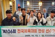 (한국글로벌뉴스 - 박소연 기자) 경기도안성교육지원청은 안성교육지원청 교육장, 교육과장, 안성시 체육회 임원 등이 참석한 가운데 제106회 전국체육대회에 출전하는 안성 관내 고등학교 소프트테니스 학생 선수들의 건강하고 활기찬 경기를 기원하며 대표 선수들을 격려했다. 이번 전국체육대회는 10월 17일부터 10월 23일까지 7일간 진행되며, 안성고등학교, 안성여자고등학교 소프트테니스 4명의 선수들이 경기도 대표로 선발되어 출전한다. 경기도 대표로 선발 출전하는 안성 학생 선수는 안성고등학교 3명, 안성여자고등학교 1명으로 경기는 10월 18일 토요일부터 22일 수요일까지 을숙도 다목적 실내생활체육관에서 진행된다. 이정우 교육장은 “이번 대회를 통해 그동안 흘린 땀과 노력이 결실을 맺는 계기가 되길 바라며 앞으로 우리나라를 대표하는 선수로 성장하는 기회가 될 것으로 기대한다”라며, “학생들이 바른 정신과 건강한 신체를 바탕으로 미래를 주도하는 체육인재로 성장할 수 있도록 안성교육지원청은 계속적으로 학교체육 활성화를 지원하겠다.”라고 밝혔다.