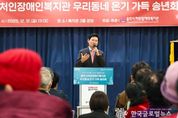 (한국글로벌뉴스 - 박소연 기자) 용인특례시는 12일 용인시처인장애인복지관이 한해 동안 나눔을 실천한 후원자와 자원봉사자를 위한 ‘우리동네 온기가득 송년회’를 열었다고 밝혔다. 이 행사에 참석한 이상일 용인특례시장은 장애인복지를 위해 헌신한 후원자와 자원봉사자, 복지관 관계자들을 격려하고, 감사의 마음을 나눴다. 이상일 시장은 “처인장애인복지관은 장애인 복지 수준 향상을 위해 훌륭한 활동을 해왔다”며 “이 자리에 계신 후원자와 자원봉사자 여러분의 헌신적인 노력은 장애와 비장애의 벽을 허물고, 장애인에게 희망을 전달했다”고 말했다. 이 시장은 “용인특례시는 장애인 복지 활동과 정책을 선도적으로 운영하고 있고, 장애인을 위한 시설개선에도 적극 노력하고 있다”며 “장애인복지관에 많은 후원이 모이고 있고, 이 마음이 용인특례시를 따뜻한 공동체 사회로 만들고 있다”고 했다. 이날 행사에는 이상일 시장을 비롯해 지역 주요 내빈, 후원자, 자원봉사자, 복지관 이용자 등 200여 명이 참석했다. 행사는 식전 공연을 시작으로 송년회 영상 시청, 송년사 및 축사, 유공자 표창, 응원 메시지 퍼포먼스 순으