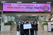 (한국글로벌뉴스 - 박소연 기자) 수원 영통중학교 창업동아리 학생들이 창업 활동 수익금을 모아 수원시 취약계층 시민을 위해 기부했다. 1월 29일 수원시청 본관 1층 로비에서 열린 기부금 전달식에는 윤영숙 시민복지국장, 영통중학교 창업동아리 학생 등이 참석했다. 학생들은 직접 디자인·제작한 탁상용 달력 100개를 판매해 마련한 수익금 45만 원을 수원시에 전달했다. 수원시는 기부금을 취약계층 시민 지원을 위해 사용할 예정이다. 영통중학교 창업동아리 학생들은 “작은 나눔이지만 어려운 이웃들에게 도움이 되기를 바라는 마음으로 기부에 참여했다”며 “직접 만든 작품으로 나눔을 실천할 수 있어 기쁘다”고 소감을 밝혔다. 윤영숙 시민복지국장은 “학생들이 활동 수익금으로 이웃사랑을 실천한 모습이 대견하다”며 “따뜻한 나눔이 지역사회 전반으로 확산되기를 바란다”고 말했다.