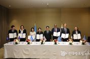 (한국글로벌뉴스 - 박소연 기자) 김민석 국무총리는 현지시간 3월 17일 17시, 스위스 제네바의 인터콘티넨탈 호텔에서, 6개 UN 기구(ILO(국제노동기구), IOM(국제이주기구), ITU(국제전기통신연합), WHO(세계보건기구), WFP(세계식량계획), UNDP(유엔개발계획))와 함께 ‘글로벌 AI Hub’ 협력의향서(Letter Of Intent) 서명식을 개최했다. 동 서명식은 김 총리 임석하에 개최됐으며, 한국 정부 대표인 과학기술정보통신부 류제명 제2차관과 글로벌 AI Hub에 참여 의향을 밝힌 6개 UN 기구 각각의 대표자가 상호 서명하는 방식으로 진행됐다. 김 총리는 오늘 협력의향서 서명식을 견인하기 위해, 미국 뉴욕과 스위스 제네바로 이어지는 2일간의 짧은 기간 동안 UN 사무총장 및 각 기구 수장들과 릴레이 면담을 진행했다. 첫날인 3월 16일 뉴욕에서 김 총리는 안토니우 구테레쉬(Antonio Guterres) 유엔 사무총장을 면담하고 한국의 AI 허브 구상에 대해 설명했으며, 구테레쉬 사무총장은 UN 차원의 큰 틀에서 한국의 AI 협력 이니셔티브에 대한 관심과 지지의사를 표명했다. &nb